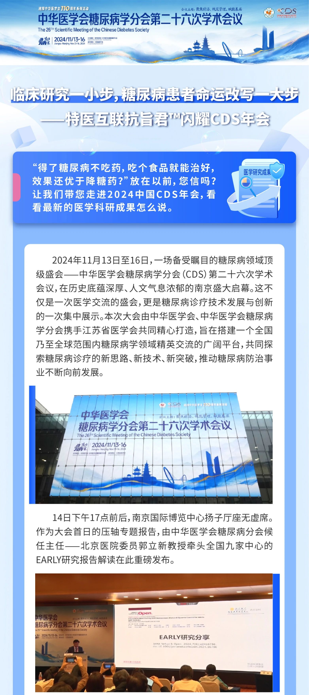 临床研究一小步,糖尿病患者命运改写一大步——特医互联抗旨君™闪耀CDS年会