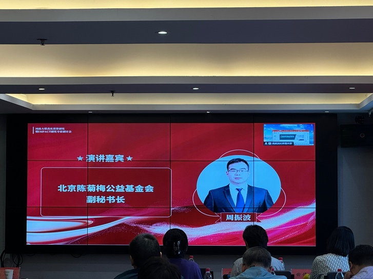 北京陈菊梅公益基金会周振波副秘书长在线上就推进医院数字医疗建设情况进行了介绍。他强调了数字化、智能化在医疗领域的重要性;分享了陈菊梅公益基金会在推动医院数字化转型方面的经验和成果;介绍了《菊梅睿研——数字诊疗专项计划》对临床医生开展疾病相关科学研究所进行的支持。