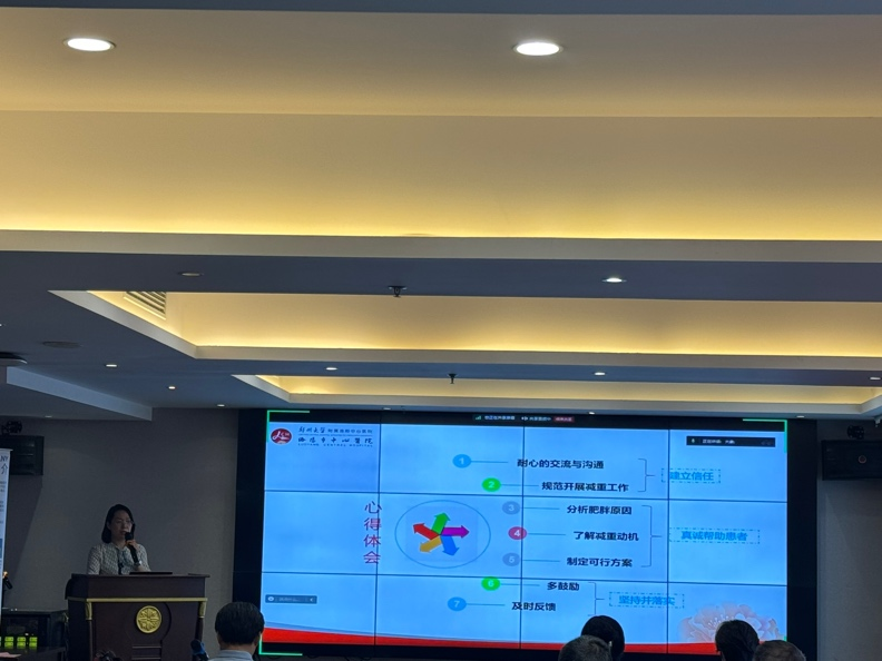 来自洛阳市中心医院营养科的田俊梅主任介绍了自己关于医学营养减重的经验与实践技巧,分享了患者通过生活方式干预后因自己指标改善和药物减量带来的喜悦和感激之情,为广大研究参与者建立了信心。
