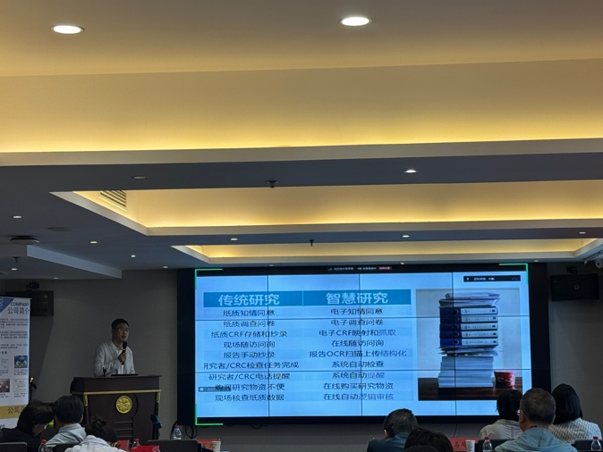 为本次研究保驾护航的CRO公司代表:厦门市优医加医学研究院田色经理介绍了智能工具在赋能临床科研方面的应用。他展示了如何通过基于互联网大数据的在线智能系统优化和简化医患的时间精力付出,提高科研效率和质量,为真实世界研究提供有力支持。